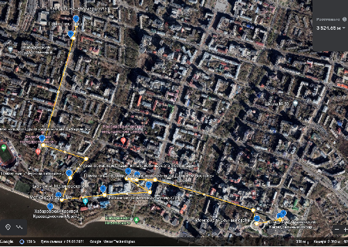 Нитка маршрута с инфраструктурными и природными объектами показа