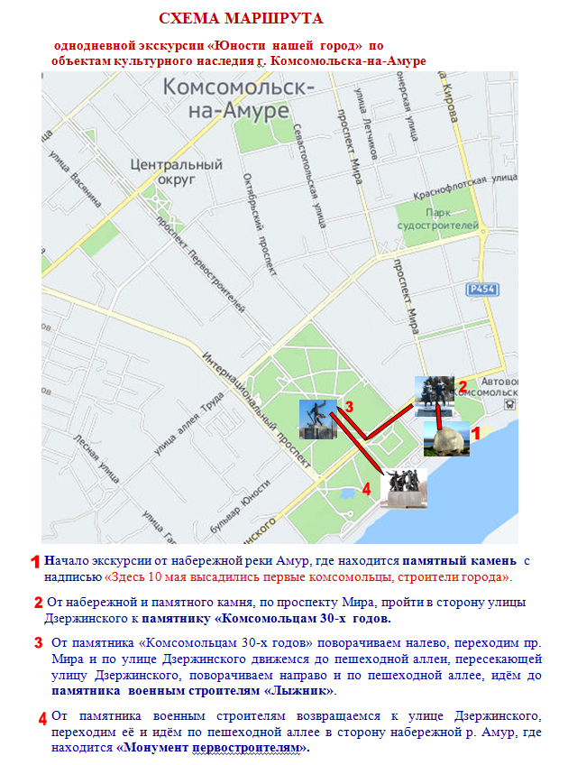 - знакомство с памятными местами, посвящёнными первостроителям города, комсомольчанам участникам Великой Отечественной войны и боевых действий в мирное время, почётным гражданам города Комсомольск-на-Амуре;