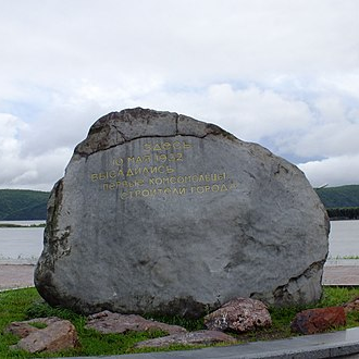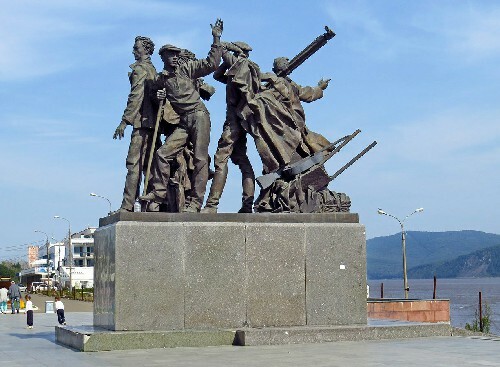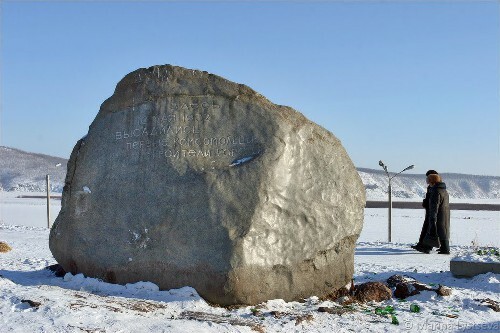 Памятник военным строителям - участникам ледового перехода из Хабаровска зимой 1933-34 гг