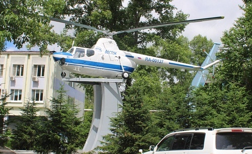 - Памятник у аэропорта местных воздушных линий. Вертолет Ми-1.