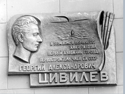 Мемориальная доска первому художнику города Г.А. Цивилёву.