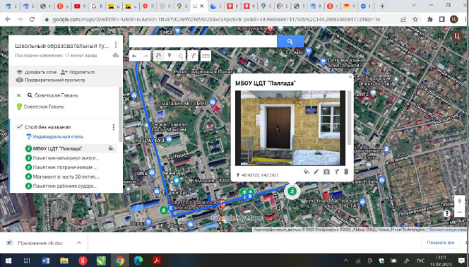 Остальные объекты маршрута находятся на улицах города Советская Гавань, поэтому время их посещения - свободное.